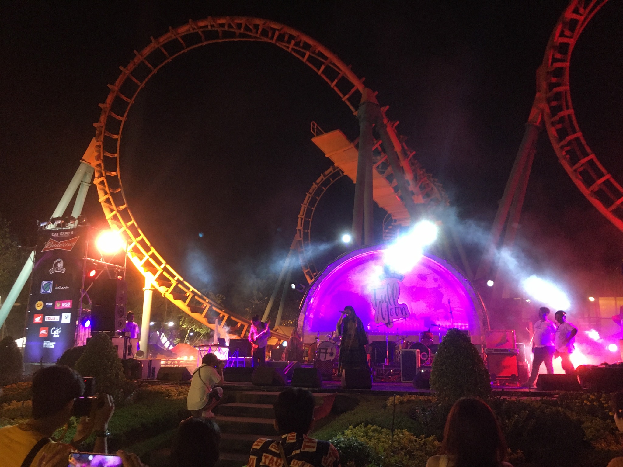 同じ11月後半、再びバンコクで彼女のパフォーマンスを見ることになります。地元で一番のラジオ局「CAT Radio」が開催する「CAT EXPO」。2日で6万人が集まる野外フェスティバルです。彼女はジェットコースターの前に作られたステージでパフォーマンスを披露しました。この日はサウンドチェックの時間が押してしまい、すべての曲を演奏できず、残念ながら100%の出来とはいきませんでした。